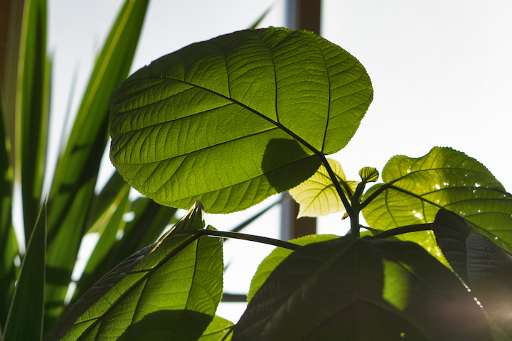 逆に、光が少ない環境で育った植物は、少ない光量を目一杯取り込もうとするので、薄く大きな葉っぱをつける傾向にあります。こうした葉っぱは、少ない光の量に適応してできた葉っぱのため、急に強い日差しが当たると許容量を超えることから、葉焼けを引き起こしやすいです。