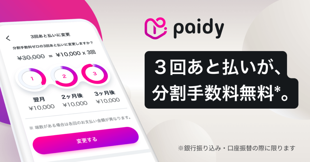 お客様の決済利便性向上のため、あと払いサービスである「Paidy」を導入しました。